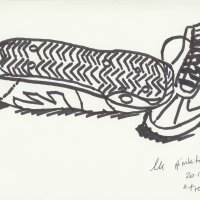 Sono tutti disegnati su un’agendina 13 x 21 cm, la maggioranza con penne Staedler 0.2, 0.4 e marker neri, tranne i disegni in blu, realizzati con una stilografica e Dizzy Gillespie con una BIC.