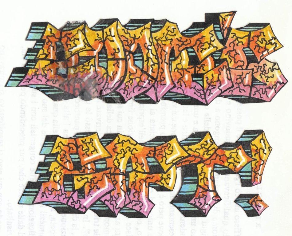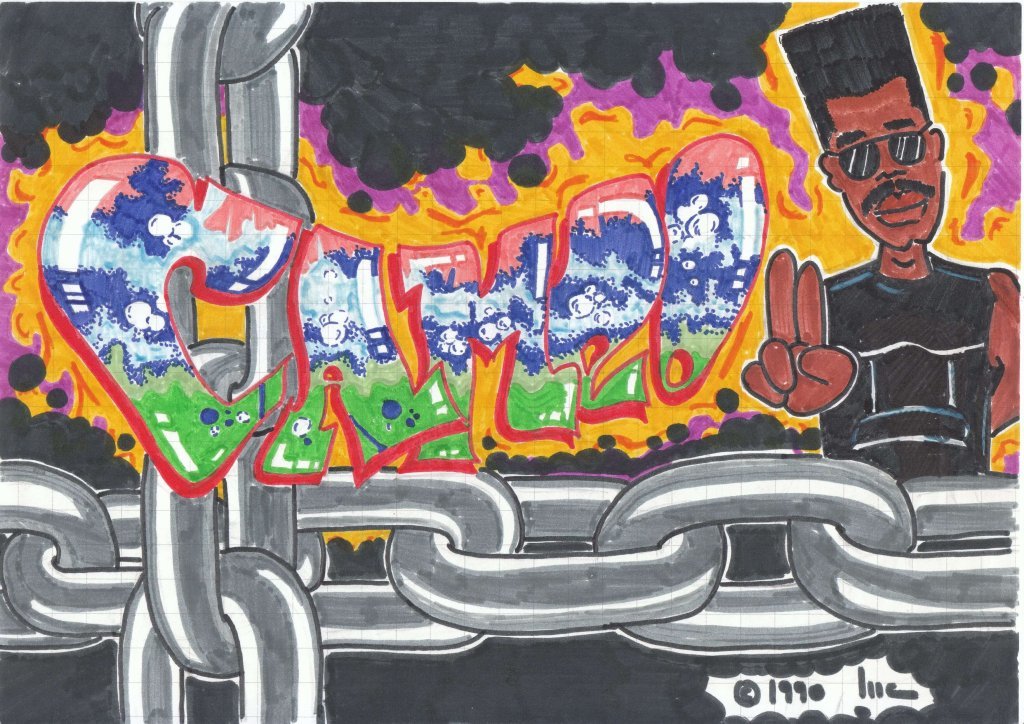 Hakeem, oltre ad essere dotato di un orecchio particolarmente fino, aveva anche una discreta propensione per il disegno. Poiché il mondo hip hop è costituito da musica (rap), ballo (breakdance) e arte visiva (graffiti), e visto e considerato che a livello di breakdance io e lui eravamo piuttosto negati, non ci rimaneva che sperimentare con l’aerosol art... Dal canto mio, nutrivo una certa passione per la grafica, per cui fui felicissimo di esplorare nuovi orizzonti.