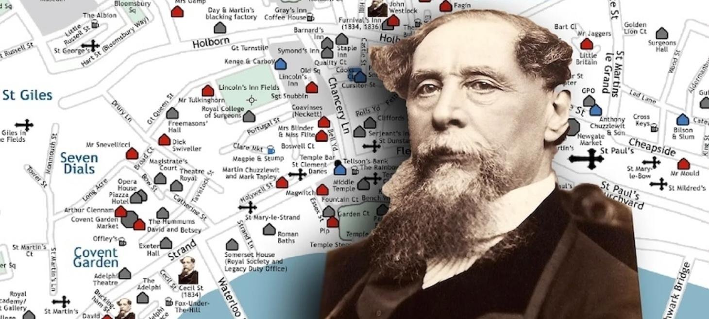 Tutti i luoghi di Londra (e dintorni), reali o fittizi, che hanno a che fare con Charles Dickens belli ordinati su una cartina.