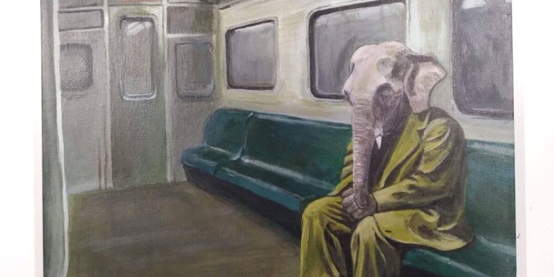 Uomo-elefante in metro